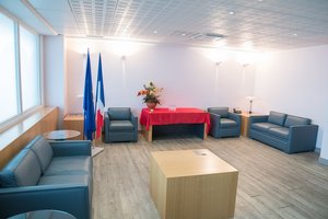 Son ambiance feutrée, ses couleurs chaleureuses, le confort d'un mobilier "design", font de ce salon un espace de détente pour faire de votre attente à l'aéroport un moment agréable.